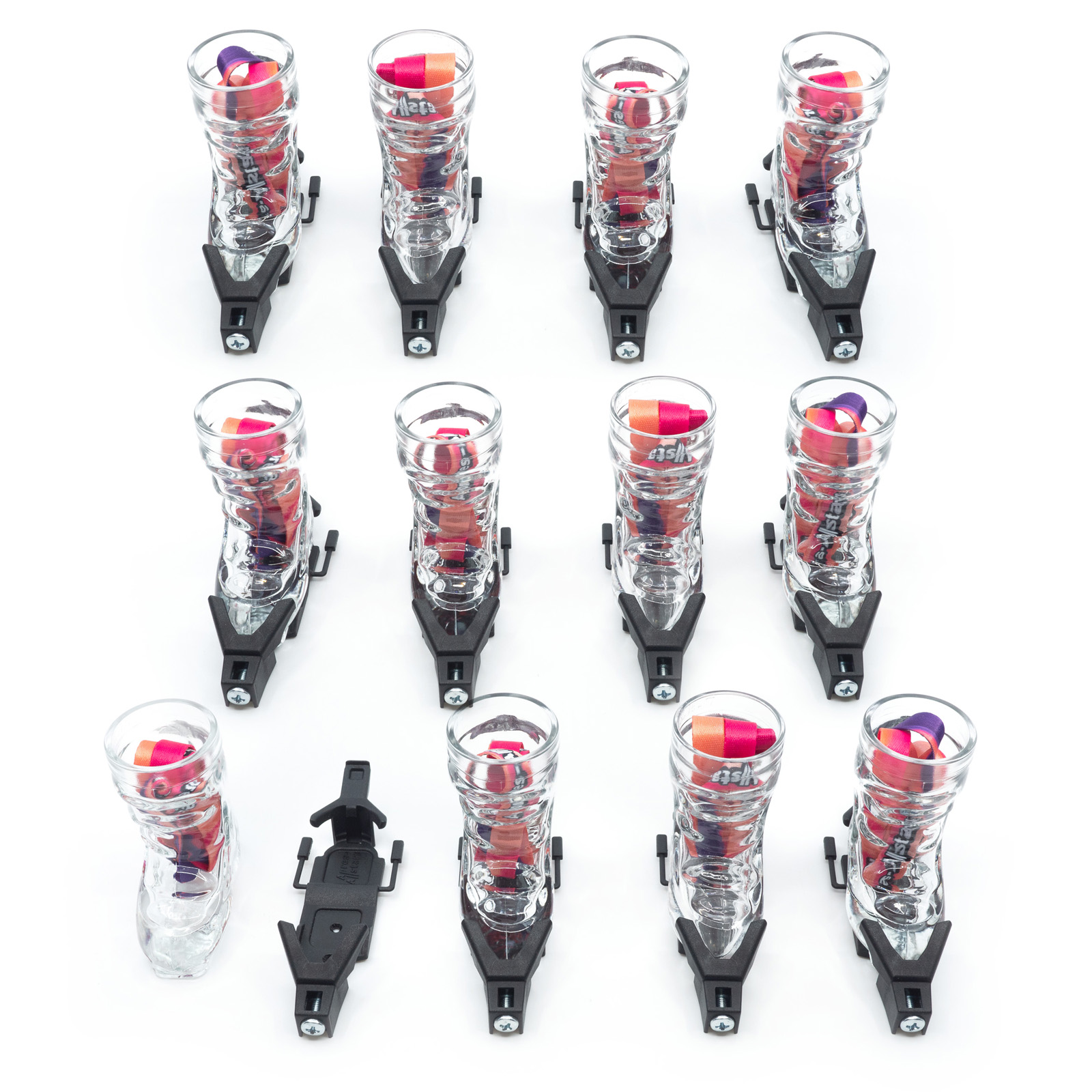 The Apres-Allstars® 4cl ski boot shot glasses with matching click bindings are the perfect party accessories.